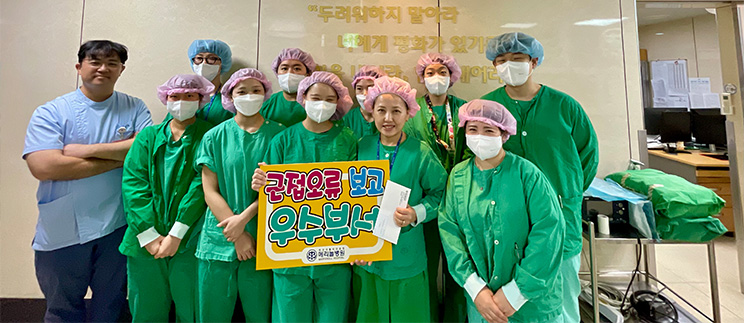 ¼ö¼ú½ÇÀº Æò¼Ò¿¡µµ ȯÀÚ¾ÈÀü»ç°í º¸°í¸¦ Ȱ¼ºÈÇϰí ȯÀÚ¾ÈÀü »ç°í¸¦ ¿¹¹æ, ȯÀÚ¾ÈÀü ¹®È¸¦ Á¤Âø½Ã۴µ¥ À̹ÙÁöÇÏ¿´À¸¸ç ºÎ»óÀ¸·Î »ó±ÝÀÌ Àü´ÞµÇ¾ú´Ù.
